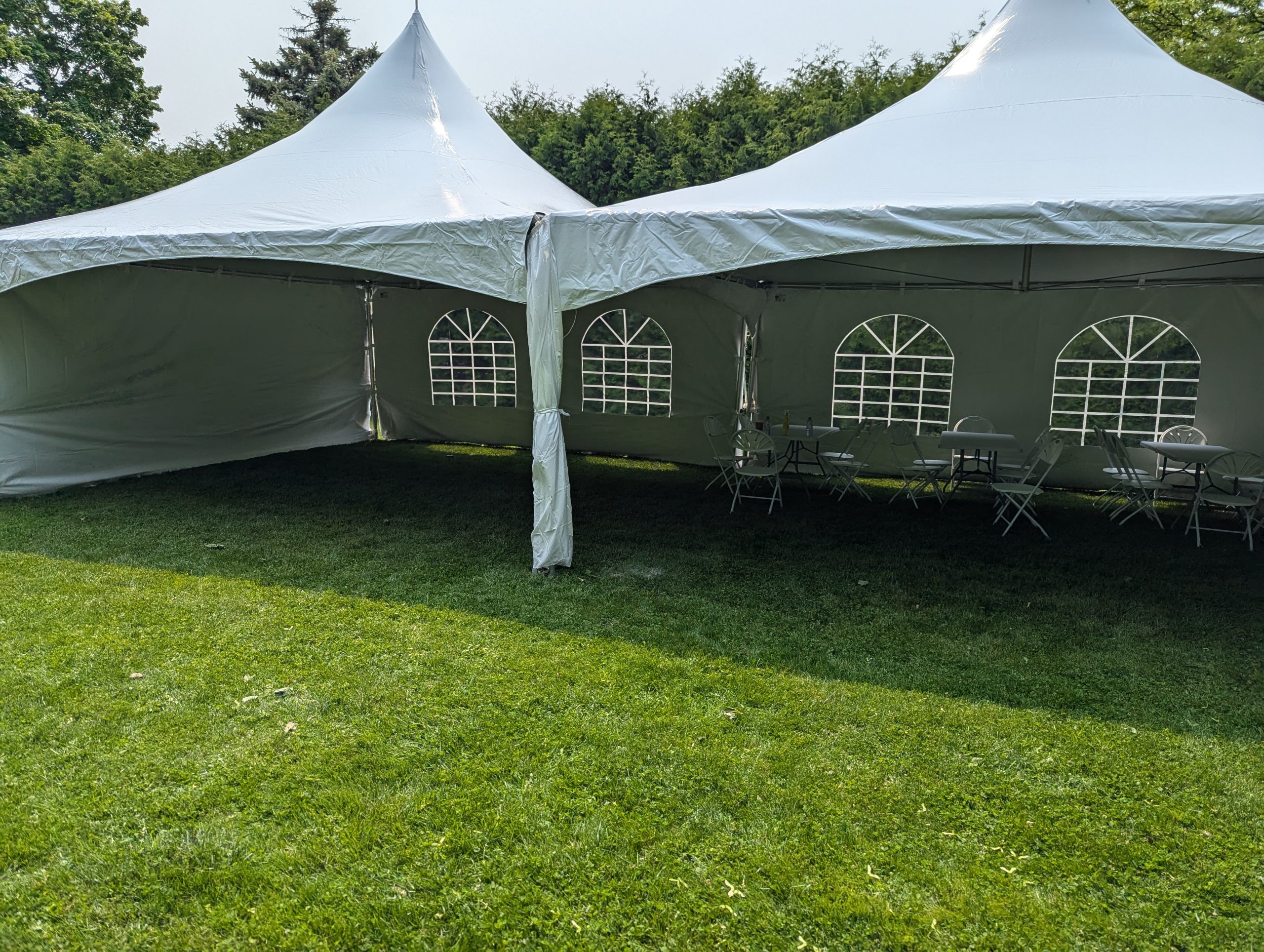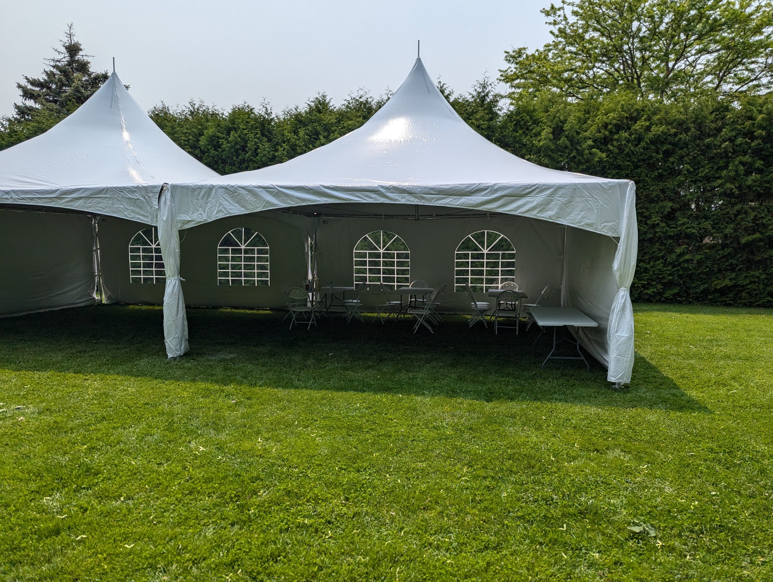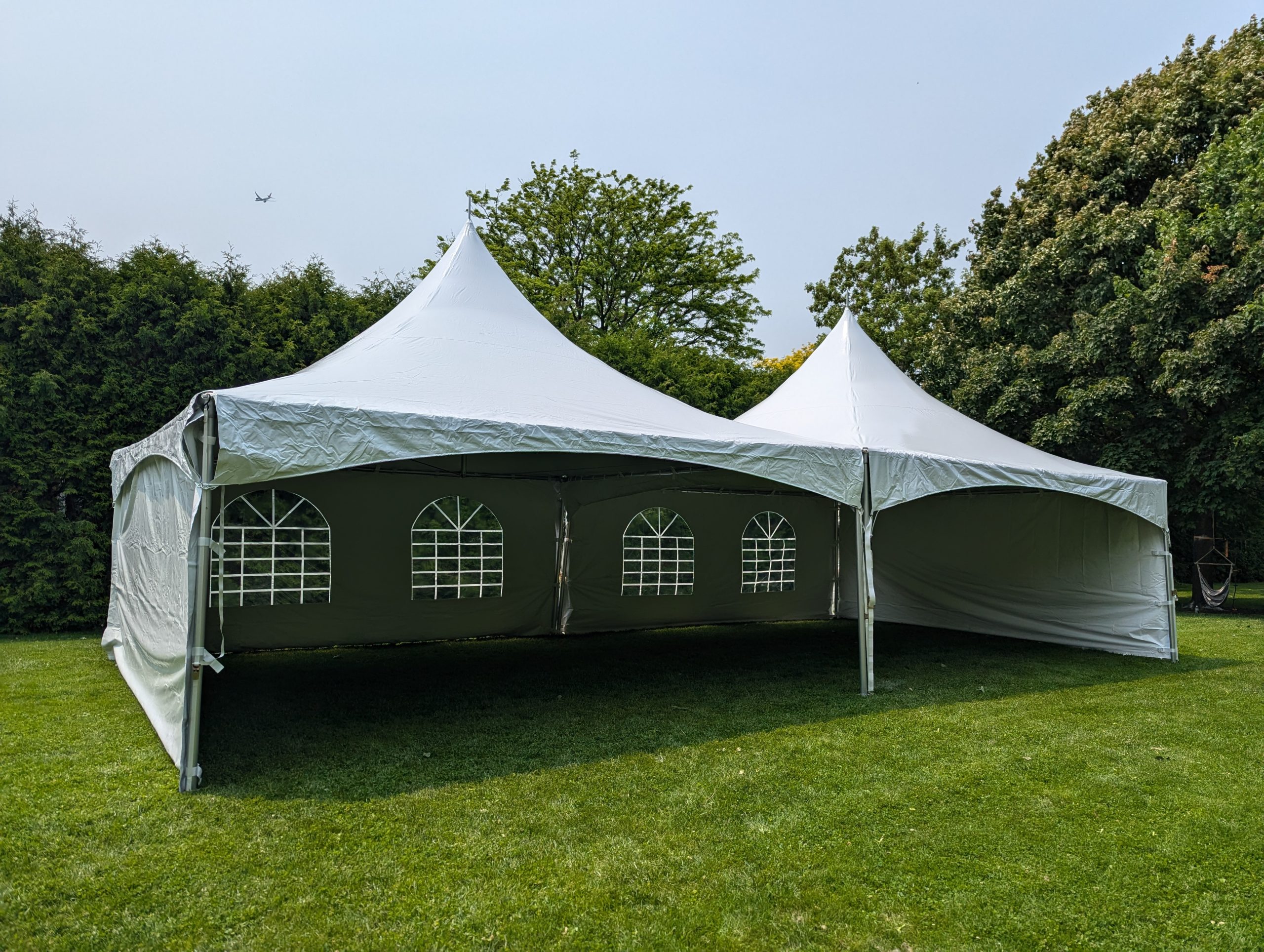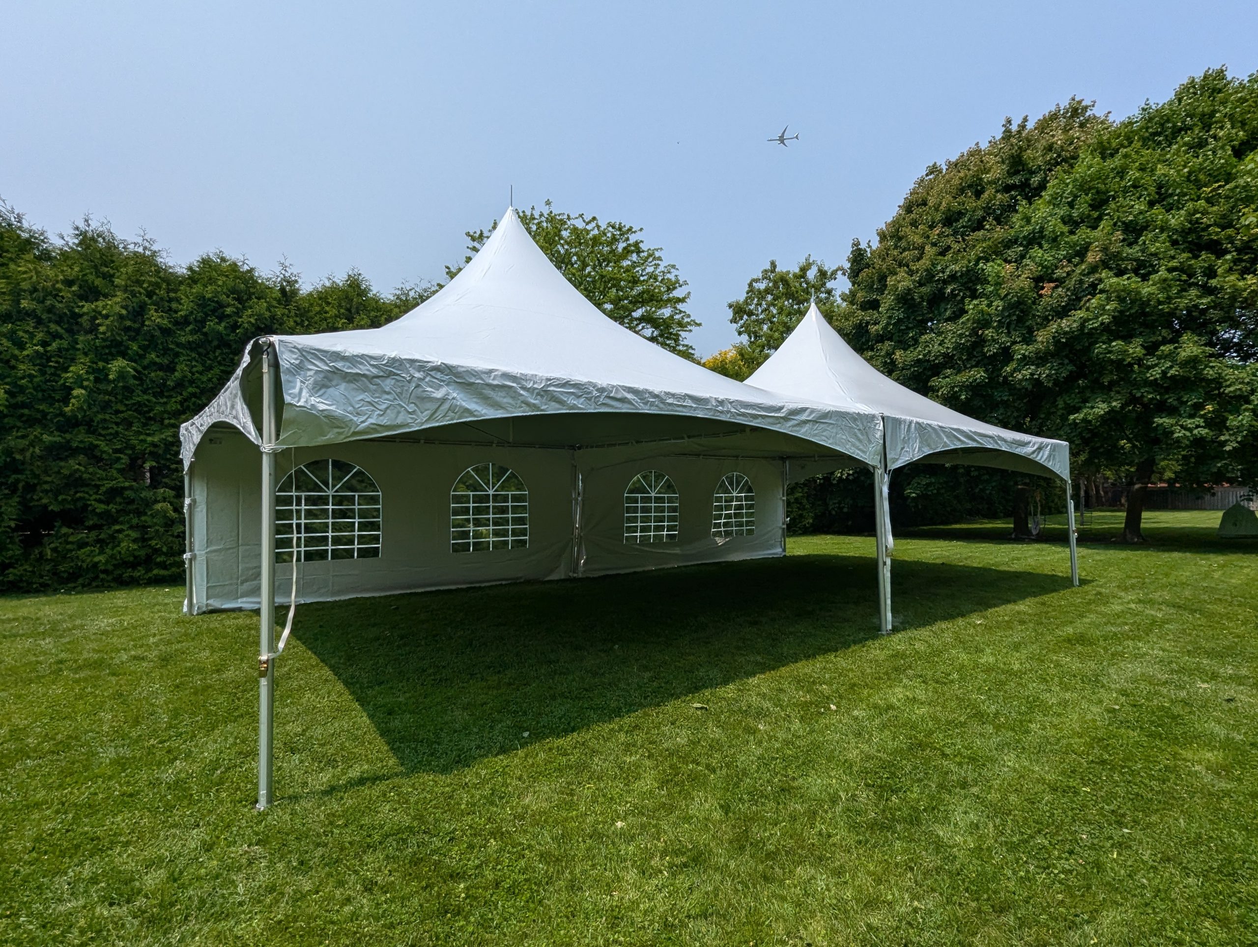 20′ x 20′ High Peak Frame Tents are designed for a quick and easy setup. This stylish, sleek High Peak Frame Tent doesn’t need to be set up on grass — it can be set up in a parking lot or on other asphalt surfaces with one of our stake drivers (sold separately). Their size and elegant look make them ideal for outdoor events such as vendor booths at fairs, craft shows, flea markets, trade shows and similar events.
